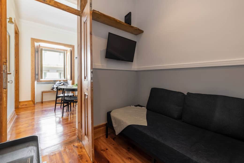 Located in the heart of historical Lisbon, in one of the city’s most iconic, unique, and culturally significant neighbourhoods. History and tradition coupled with the vibrancy of the city, all at your doorstep. The apartment was recently refurbished and is wonderfully bright and charming. An authentic Lisbon experience complemented by comfort and convenience. The apartment is perfect for a couple, family or group of friends. Located on the 1st floor, so guests will need to climb one set of stairs. The queen sized bed is partitioned from the living area, and provides complete privacy from the living space. The design aims to maximise the light from 4 large bay windows. The result works very well, making for a very bright and spacious atmosphere. The living space has a beautiful stone dinning table. Perfect for dinning, having breakfast or working. The kitchen is fully equipped with Nespresso coffee machine. fridge, freezer, stove, kettle, toaster and utensils. We also provide basics like coffee, tea, olive oil salt and pepper. There is a room (blind) with sofa bed and TV. The sofa bed is a single Bathroom, shower and toilet are equipped with shampoo, hand wash, and toilet paper. Hot water is automatic Guests have access to the entire apartment During your stay guests can contact us at all times on Airbnb or by mobile and WhatsApp Mouraria along with neighbouring Alfama and Castello make up the oldest quarters of Lisbon. The house is a 3-minute walk from Largo Severa "The Home of Fado Music", the birthplace of Portugal's own musical blues. The square Largo Das Olarias is charming and has a strong sense of history and old Lisbon. From the door of the apartment building, you have some of the best views in all Lisbon out on to the walls of Saint Georges Castle. Most of the main tourist sites and scenic spots in historic Lisbon are within walking distance. Lisbon is a city best discovered on foot and this is a perfect location to start. Less than 5-minute walk: - Famous 28 Tram, first stop - “Largo da Severa” The home of Fado music - Lively Martim Moniz - Subway station (Martim Moniz) - Famous rooftop bar “Topo” - Many restaurants and bars including popular vegetarian “The Food Temple” and one of Lisbon's most famous Tascas “Ze de Mouraria” 10 Minute Walk: - Saint Georges Castle - Rossio Square (Praca Dom Pedro IV) the historic centre of Lisbon - Largo Intendente, one of Lisbon’s most beautiful and trendiest squares - Miradouro Da Graca (Graca Viewing Point), the best place for a sundowner with views of the city - “Cervejaria Ramiro”, Lisbon’s most iconic fish restaurant - Casa Intendente, eclectic trendy bar, in a fabulous old aristocratic home ADDRESS: Largo das Olarias 56, Floor 1, Door 5, Lisboa, Postcode: 1100-376 WALKING TO/FROM MARTIM MONIZ: Martim Moniz square is about a 5-minute walk from the apartment. Note that the shortest route is along Travessa do Jordão but it has quite a lot of stairs, so may not be convenient if you have a lot of luggage. If you walk Rua Cavaleiros and turn left onto Largo Do Terreirinho and right onto Largo Das Olarias, it's a little longer but fewer stairs. TAXIS: Taxi’s to and from the airport should take about 20 minutes (depending on traffic). They can drop you off outside the house. Uber works well in Lisbon and often cheaper than normal cabs. Closest taxi rank is at Martim Moniz, less than 5-minute walk from the house. PARKING: Parking is difficult in Lisbon Downtown. There is an underground car park at Martim Moniz, a 5-minute walk from the house. Also, check Parkopedia Portugal for more parking in the area and downtown Lisbon. SUBWAY: Closest subway is Martim Moniz station, about a 5-minute walk from the house. Take the subway exit signposted for "Rua Cavaleiros". AIRPORT TO APARTMENT BY SUBWAY About 45 minutes. Take airport subway line, change for the green line at Alameda in the direction of Cais Do Sodre. Martim Moniz is the 3rd stop. Note that Arroios station is currently not operating. 28 TRAM: The iconic 28 Tram 1st stop is at Martim Moniz, less than a 5-minute walk. TRAINS: Trains to beach areas like Cascais and Carcavelos can be taken from Cais do Sodre train station, about 15-minute walk, or two stops by subway. As shown in the photos the primary king sized bed is located in a semi open plan format. There is a dividing wall, which is partly open. This design is set maximise the fantastic light the apartment recieves.