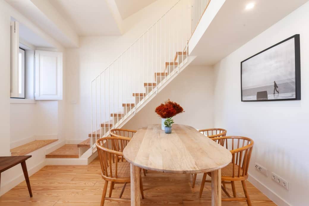 Experience Lisbon in comfort at this stylish, peaceful, and centrally-located duplex. In practical terms this is a 2-bedroom apartment but advertised as a 1-bed. The entire building was renovated (finished in 2021); all the charm with none of the hassle. Ideally located to explore all of Lisbon's charming, historic and trendy areas, entirely by foot if you like. An authentic Lisbon experience complemented by comfort and convenience. Located on a quiet pedestrian street, 3rd floor, no elevator. In practical terms this a 2-bedroom apartment but advertised as a 1-bedroom. The mezzanine area can function as an extra living space or a second bedroom with a queen sized bed. The apartment is bright, spacious and quiet. On the rooftop patio you can enjoy sunset or a morning coffee. Lots of added comfort for historic Lisbon including air-con, coffee machine and coffee, washer/dryer, dishwasher, heated towel rack, oven, microwave, and work desk. The windows are equipped with high grade double glazed windows; it is really very quiet. The building is located on a nice, quiet pedestrian street. It is a short walk (40 meters or so) from the closest taxi drop off point. The apartment is the 3rd floor with out elevator. Guest will have access to the apartment through the building door. The entrance door to the building and the apartment door is opened using a keypad, so no keys to lose ;-) Guests will be provided with their unique entry code shortly before their check-in day. This apartment is owner operated. We (Chiara and Rob) will provide you with our contact details and be available by message or call throughout your stay. We have two young kids (3 and 4 years old), so we prefer that only emergencies are directed our way outside "normal" work hours. Located in the heart of historic Lisbon, in one of the city’s most iconic, unique, and culturally significant neighbourhoods. History and tradition, coupled with the city's vibrancy, are all at your doorstep. Most of the main attractions and most vibrant areas are within walking distance; - Less than 2 minutes walk; 1st stop 28 tram, Largo de Severa (home of fado music), Ze da Mouraria (famous traditional Portuguese restaurant/Tasca), Food Temple (maybe the most famous vegan restaurant and probably the city's longest surviving) - less than 5 minutes walk: Baixa, Rossio Square (historic city centre), Jardim da Cerca da Graça (a hillside garden with views of the city, a gem hidden in broad daylight), famous fado graffiti - About 10 minutes walk: Av. Liberdade, Ramiros Restaurant (as seen on Anthony Bourdain and Rick Stein), Miradouro da Graça (famous viewing point, in the Graça), trendy intendente square, the Castle of Saint George A great location to explore the city on foot, but you are also a 2-minute walk from Martim Moniz Metro station (the green line that connects to the redline for the airport) and a 2-minute walk from the 1st stop of the famous 28 Tram. If feeling tired (Lisbon is hilly), you can always hail a taxi or a taxi ride service like Uber, Bolt or FreeNow. Apartment is on the 3rd floor without elevator. The building is located on a pedestrian street, around 40 meters from the closest taxi drop-off point. The entire building has been renovated to a high standard. Completed in 2021.