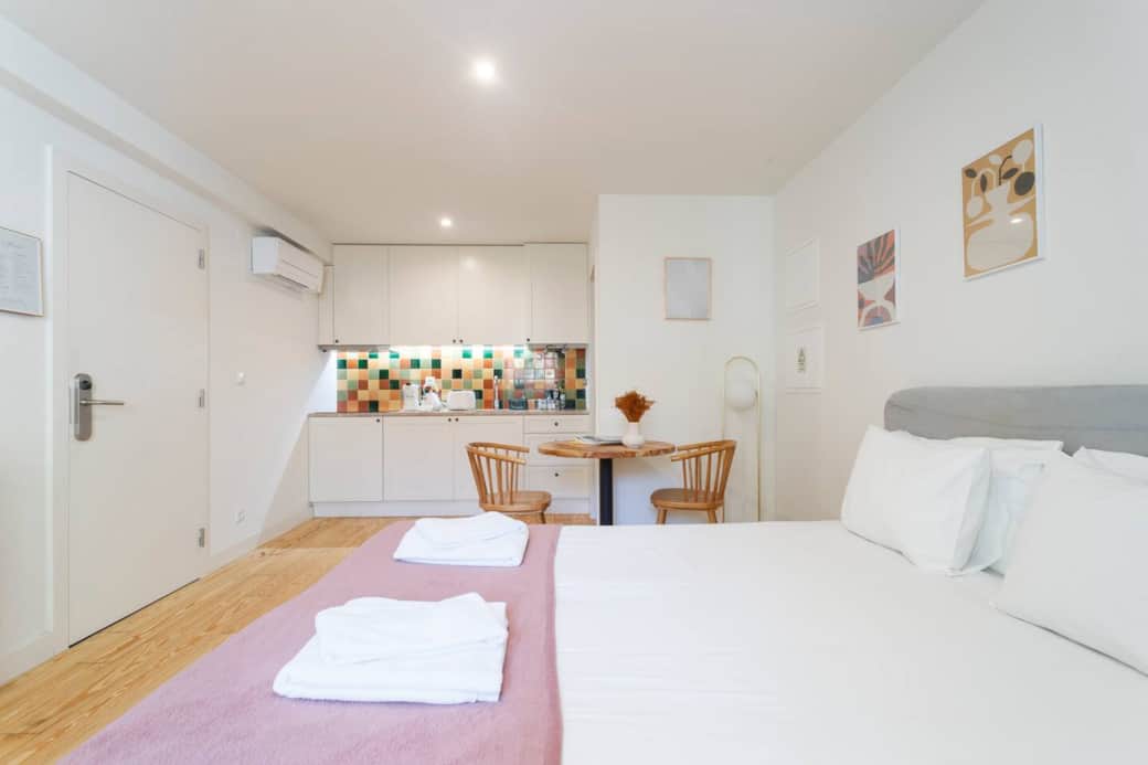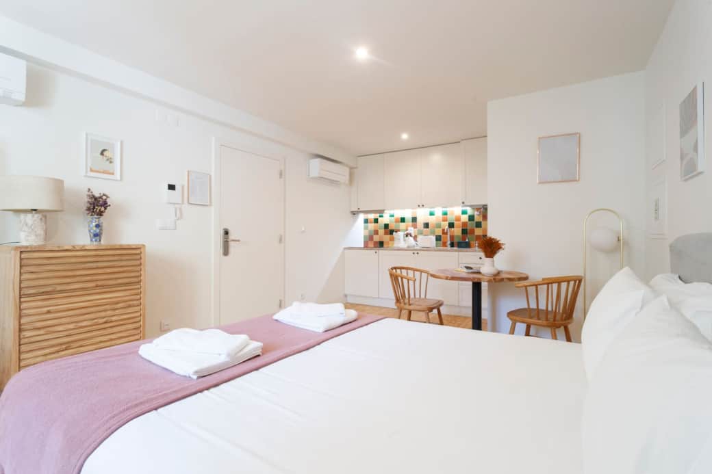 Relax at this newly renovated, peaceful and centrally-located ground-floor studio apartment. Includes washing machine/dryer, air-con, coffee & coffee machine and a queen-sized bed with exceptionally comfortable mattresses;-) The famous 28 Tram 1st stop and metro are only 2 minutes walking distance; much of Lisbon's historic points of interest are within walking distance, and Lisbon is best discovered on foot! Chiara & Rob live near and are contactable before and throughout your stay. Relax in this quiet, clean and tastefully decorated studio apartment. Lots of added comfort for historic Lisbon including air-con, coffee machine and coffee and microwave. The windows are equipped with high grade double glazed windows; making it very quiet. The building is located on a nice, quiet pedestrian street. It is a short walk (40 meters or so) from the closest taxi drop off point. The apartment is on the ground floor. Guest will have access to the apartment through the building door. The entrance door to the building and the apartment door are opened using a keypads, so no keys to lose ;-) Guests will be provided with their unique entry code shortly before their check-in day. This apartment is owner operated. We (Chiara and Rob) will provide you with our contact details and be available by message or call throughout your stay. We have two young kids (3 and 4 years old), so we prefer that only emergencies are directed our way outside "normal" work hours. Located in the heart of historic Lisbon, in one of the city’s most iconic, unique, and culturally significant neighbourhoods. History and tradition, coupled with the city's vibrancy, are all at your doorstep. Most of the main attractions and most vibrant areas are within walking distance; - Less than 2 minutes walk; 1st stop 28 tram, Largo de Severa (home of fado music), Ze da Mouraria (famous traditional Portuguese restaurant/Tasca), Food Temple (maybe the most famous vegan restaurant and probably the city's longest surviving) - less than 5 minutes walk: Baixa, Rossio Square (historic city centre), Jardim da Cerca da Graça (a hillside garden with views of the city, a gem hidden in broad daylight), famous fado graffiti - About 10 minutes walk : Av. Liberdade, Ramiros Restaurant (as seen on Anthony Bourdain and Rick Stein), Miradouro da Graça (famous viewing point, in the Graça), trendy intendente square, the Castle of Saint George A great location to explore the city on foot, but you are also a 2-minute walk from Martim Moniz Metro station (the green line that connects to the redline for the airport) and a 2-minute walk from the 1st stop of the famous 28 Tram. If feeling tired (Lisbon is hilly), you can always hail a taxi or a taxi ride service like Uber, Bolt or FreeNow. Taxi: - Take taxi to Rua Marquês Ponte de Lima 17 - On the opposite side of the street is the start of Rua João do Outeiro, walk down the street till you get to a small square (40 meters), the building Rua João do Outeiro 46 will be on your left Metro: - Exit at Martim Moniz, a 3-minute walk, but uphill. Hence better to take taxi to other side which is even closer and downhill (easier with luggage) - Building is on Rua João do Outeiro 46, and is on your right. Apartment is on the ground floor. The building is located on a pedestrian street, around 40 meters from the closest taxi drop-off point. The entire building has been renovated to a high standard. Completed in 2021.