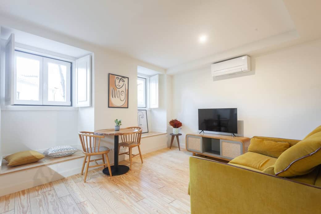 Relax at this newly renovated, peaceful and centrally-located ground-floor studio apartment. Includes washing machine/dryer, air-con, coffee & coffee machine, a queen-sized bed, and comfy sofa. The famous 28 Tram 1st stop and metro are only 2 minutes walking distance; much of Lisbon's historic points of interest are within walking distance, and Lisbon is best discovered on foot! Chiara & Rob live near and are contactable before and throughout your stay. Relax in this quiet, clean and tastefully decorated studio apartment. Lots of added comfort for historic Lisbon including air-con, coffee machine and coffee and microwave. The windows are equipped with high grade double glazed windows; making it very quiet. The building is located on a nice, quiet pedestrian street. It is a short walk (40 meters or so) from the closest taxi drop off point. The apartment is on the ground floor. Guest will have access to the apartment through the building door. The entrance door to the building and the apartment door are opened using a keypads, so no keys to lose ;-) Guests will be provided with their unique entry code shortly before their check-in day. This apartment is owner operated. We (Chiara and Rob) will provide you with our contact details and be available by message or call throughout your stay. We have two young kids (3 and 4 years old), so we prefer that only emergencies are directed our way outside "normal" work hours. Located in the heart of historic Lisbon, in one of the city’s most iconic, unique, and culturally significant neighbourhoods. History and tradition, coupled with the city's vibrancy, are all at your doorstep. Most of the main attractions and most vibrant areas are within walking distance; - Less than 2 minutes walk; 1st stop 28 tram, Largo de Severa (home of fado music), Ze da Mouraria (famous traditional Portuguese restaurant/Tasca), Food Temple (maybe the most famous vegan restaurant and probably the city's longest surviving) - less than 5 minutes walk: Baixa, Rossio Square (historic city centre), Jardim da Cerca da Graça (a hillside garden with views of the city, a gem hidden in broad daylight), famous fado graffiti - About 10 minutes walk : Av. Liberdade, Ramiros Restaurant (as seen on Anthony Bourdain and Rick Stein), Miradouro da Graça (famous viewing point, in the Graça), trendy intendente square, the Castle of Saint George Apartment is on the ground floor. The building is located on a pedestrian street, around 40 meters from the closest taxi drop-off point. The entire building has been renovated to a high standard. Completed in 2021.